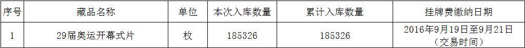 您的當(dāng)前位置: 首頁 > 托管公告 > 出入庫公告 >2016(托)第298號 藏品《29屆奧運開幕式片》托管入庫公告