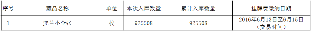 藏品《兜蘭小全張》托管入庫公告