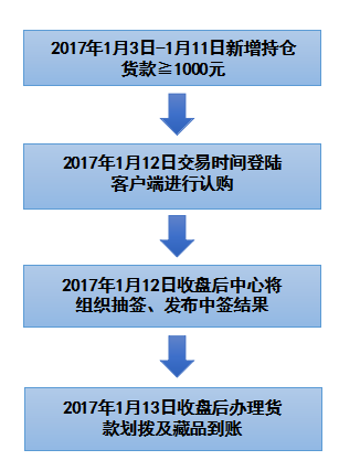 如:某位投資人會員2016年12月31日收盤持倉貨款10000元,截止到2017年1月11日持倉貨款11000元,新增持倉貨款≧1000元,則其具有認(rèn)購抽簽資格;