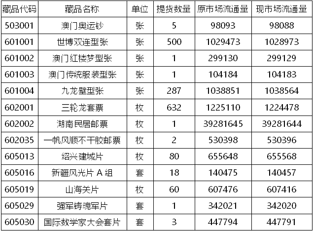 根據(jù)投資人會員的提貨申請,經(jīng)本中心審核通過,《世博雙連型張》等藏品已辦理提貨手續(xù)。經(jīng)統(tǒng)計,以下藏品已于今日完成出庫: