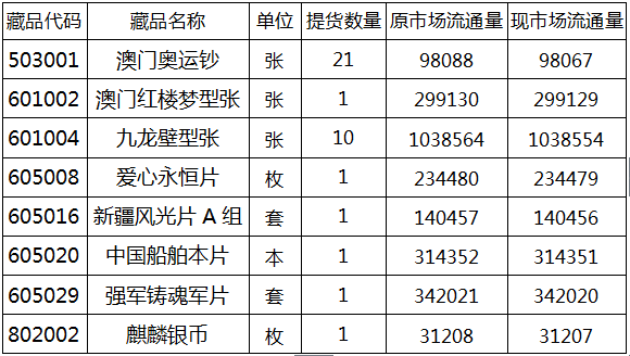 根據(jù)投資人會員的提貨申請,經(jīng)本中心審核通過,《澳門奧運鈔》等藏品已辦理提貨手續(xù)。經(jīng)統(tǒng)計,以下藏品已于今日完成出庫:
