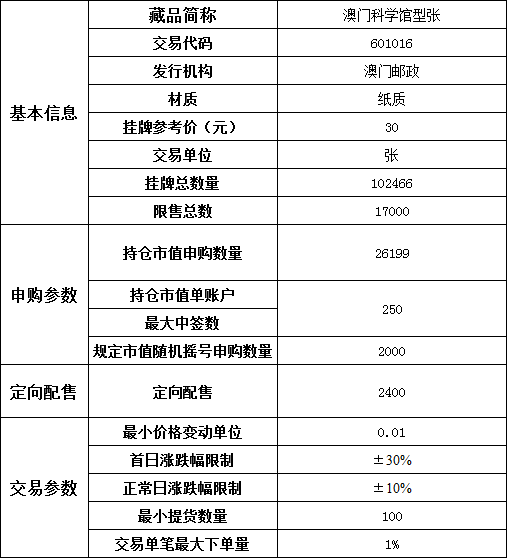 本次申購(gòu)藏品采用持倉(cāng)市值申購(gòu)、規(guī)定市值隨機(jī)搖號(hào)申購(gòu)相結(jié)合的方法。