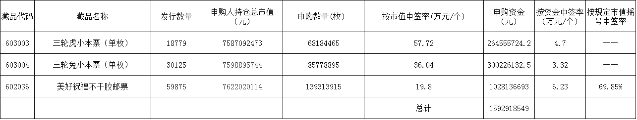 您的當(dāng)前位置: 首頁(yè) > 上市公告 > 中簽公告 >2016(交)第516號(hào) 《三輪虎小本票(單枚)》等藏品申購(gòu)中簽公告