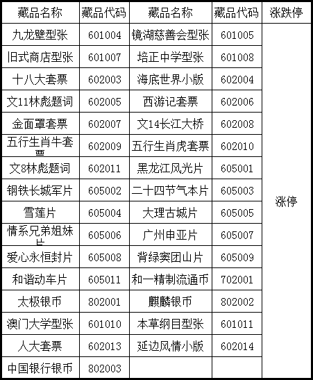 《九龍壁型張》交易藏品停牌公告