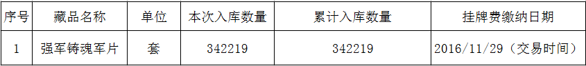 藏品《強(qiáng)軍鑄魂軍片》托管入庫公告