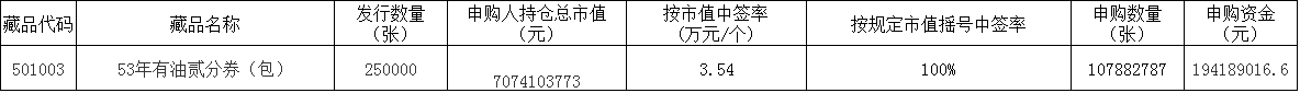 本次申購藏品采用持倉市值申購、規(guī)定市值隨機搖號申購相結(jié)合的方法。請廣大參與申購的投資人會員關(guān)注交易賬號中持倉數(shù)量和資金變化情況。