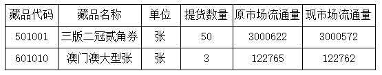 關(guān)于《三版二冠貳角券》等藏品的出庫公告