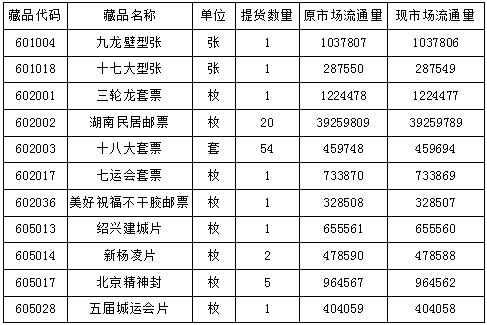 根據(jù)投資人會員的提貨申請,經(jīng)本中心審核通過,《十八大套票》等藏品已辦理提貨手續(xù)。以下為今日完成藏品出庫的數(shù)據(jù)匯總: