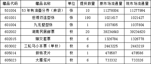 根據(jù)投資人會員的提貨申請,經(jīng)本中心審核通過,《世博雙連型張》等藏品已辦理提貨手續(xù)。以下為今日完成藏品出庫的數(shù)據(jù)匯總: