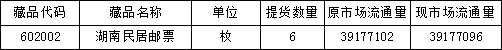 根據(jù)投資人會(huì)員的提貨申請(qǐng),經(jīng)本中心審核通過,藏品《湖南民居郵票》已辦理提貨手續(xù)。以下為今日完成藏品出庫的數(shù)據(jù)匯總: