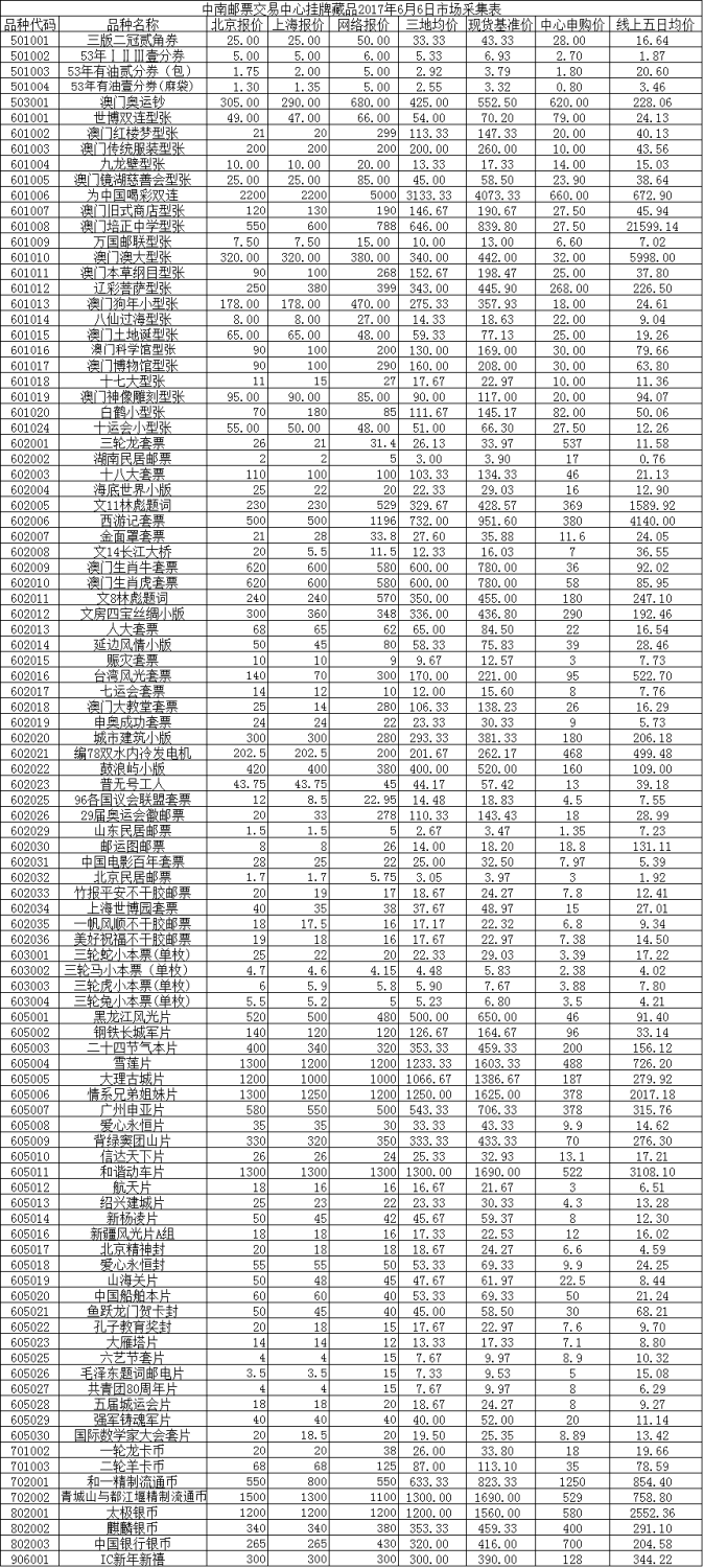您的當(dāng)前位置: 首頁(yè) > 郵幣卡資訊 >中南郵票交易中心掛牌藏品2017年6月6日市場(chǎng)采集表