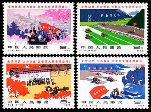 1975年全國農(nóng)業(yè)學(xué)大寨會議提出了“普及大寨縣”的口號。為了配合這一運動,中國郵電部于1977年4月9日發(fā)行了這套郵票。