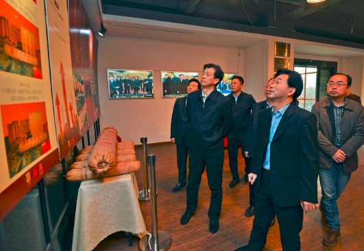 省委常委、宣傳部長(zhǎng)蔡振紅(左三)聽(tīng)取聯(lián)合利國(guó)文交所董事長(zhǎng)楊山青匯報(bào)(左四)