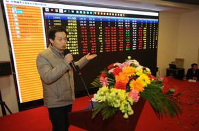 中南郵票交易中心總裁孔愛(ài)民介紹交易系統(tǒng)。