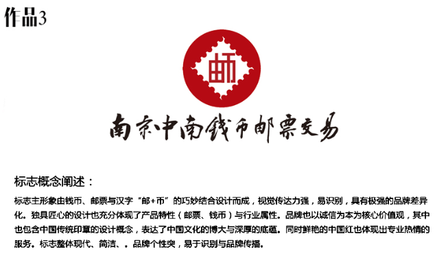專家小組和專業(yè)團(tuán)隊(duì)投票通過,認(rèn)為該設(shè)計(jì)理念符合“雙南”的訴求,且結(jié)合的恰當(dāng)好處,易識(shí)別,易運(yùn)用,也有深度。該作品已通知作者并支付了獎(jiǎng)勵(lì),現(xiàn)由湖南省中南郵票交易中心有限公司和南京文化藝術(shù)產(chǎn)權(quán)交易所共同擁有該設(shè)計(jì)作品的知識(shí)產(chǎn)權(quán),包括:著作權(quán)、使用權(quán)和發(fā)布權(quán)等,并有權(quán)對(duì)該設(shè)計(jì)作品進(jìn)行修改、組合和應(yīng)用。