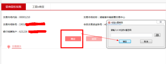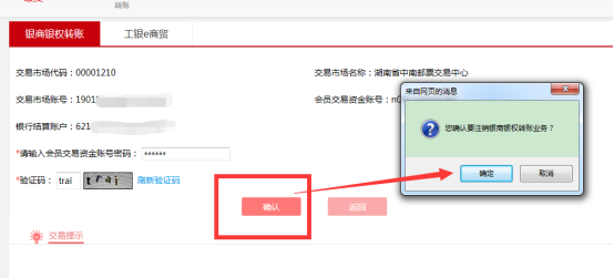 第四步,確認。核對基本信息,在會員交易資金賬號密碼中輸入交易客戶端資金密碼。點擊確認。