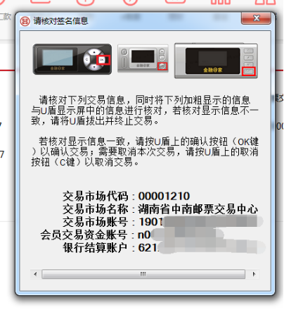 第五步,輸入U盾密碼,核實簽名信息,在U盾上按兩次ok鍵按鈕。完成操作。