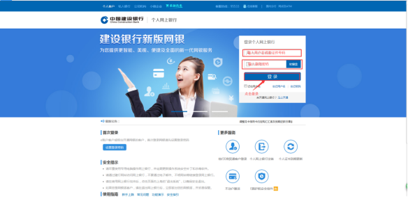 2.點(diǎn)擊個(gè)人網(wǎng)上銀行登陸即可進(jìn)入登陸頁面并輸入相關(guān)信息,即可完成登陸。注意,首次登陸網(wǎng)銀,網(wǎng)頁提示安裝的安全組件請(qǐng)?jiān)试S加載安裝,以免影響登陸。