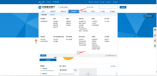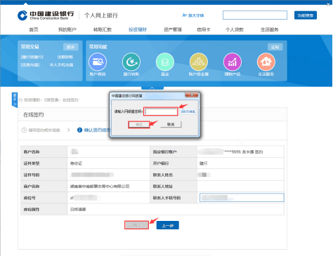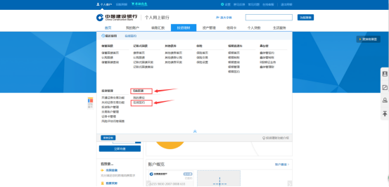 3.登陸個(gè)人網(wǎng)銀主頁后點(diǎn)擊 “投資理財(cái)”后,再點(diǎn)擊下拉按鈕,再選擇“E商貿(mào)通”點(diǎn)擊“在線簽約”。